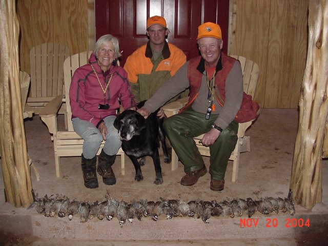 Frank, John, Dave with guide Paul and 45 birds before 2PM - 20 coveys in the