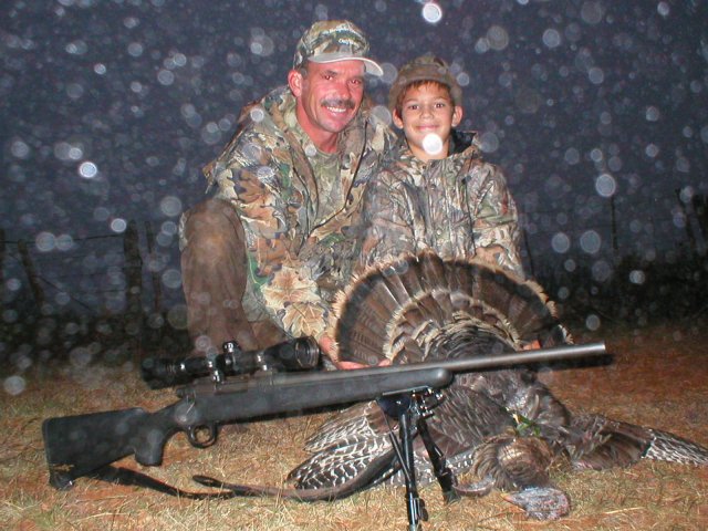 Jake Thompson and dad Steve with Jake's turkey