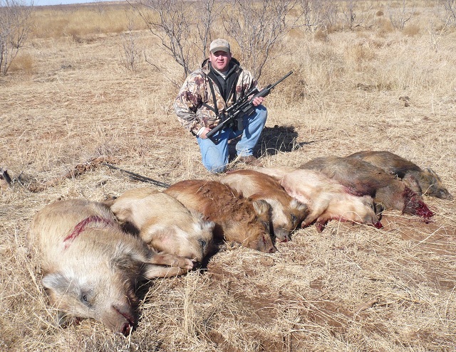 Kattner with the 7 hogs he killed in one group with new AR