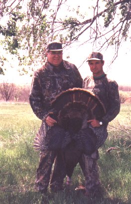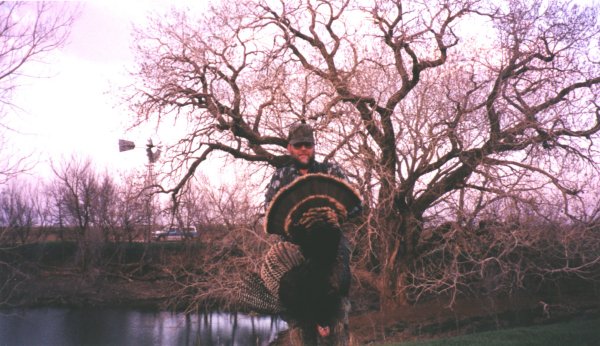 Eilders, Lena IL., with his Rio Grande gobbler shot the last afternoon of his hunt.